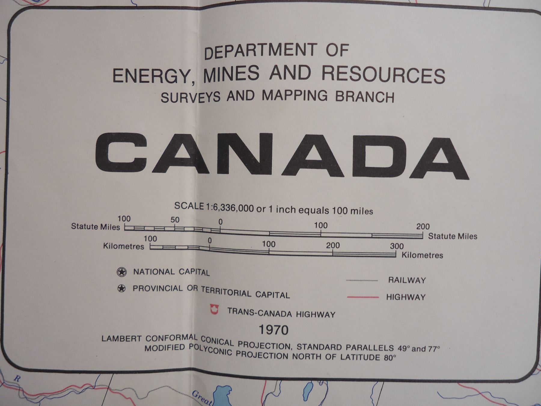1970 Map of Canada-40"x36" and Map of Dominion of Canada-23.5"x16.5"
