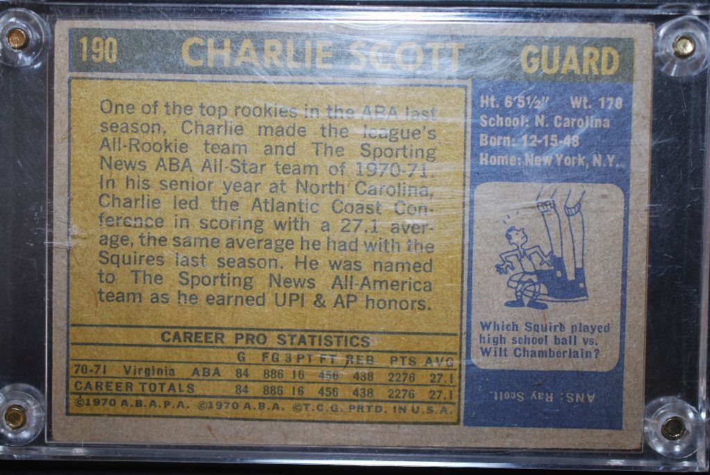 1970 NCAA Charlie Scott Virginia Squires Basketball Trading Card In Display Case; EST. $5-10
