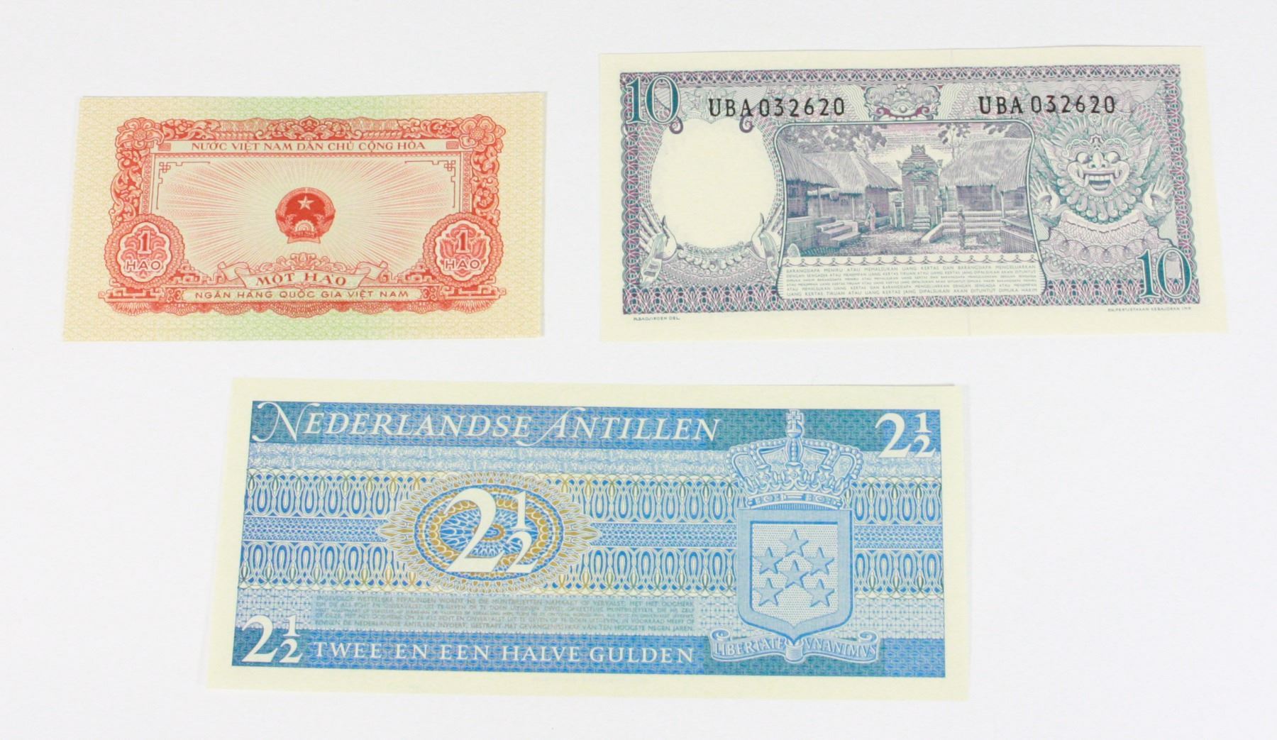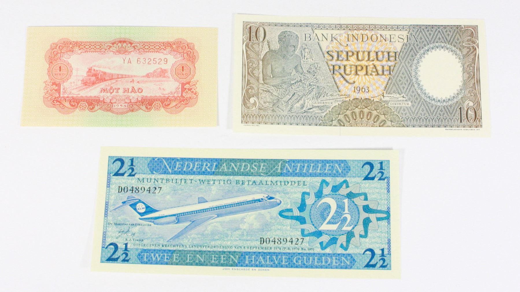 VIETNAM 1958 1 HAO PAPER MONEY BANKNOTE, AND 1963 INDONESIA 10 RUPIAH NOTE PAPER MONEY