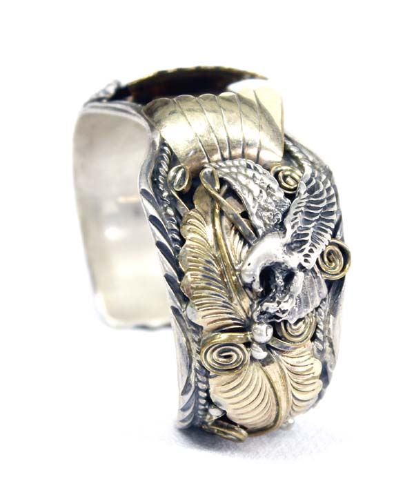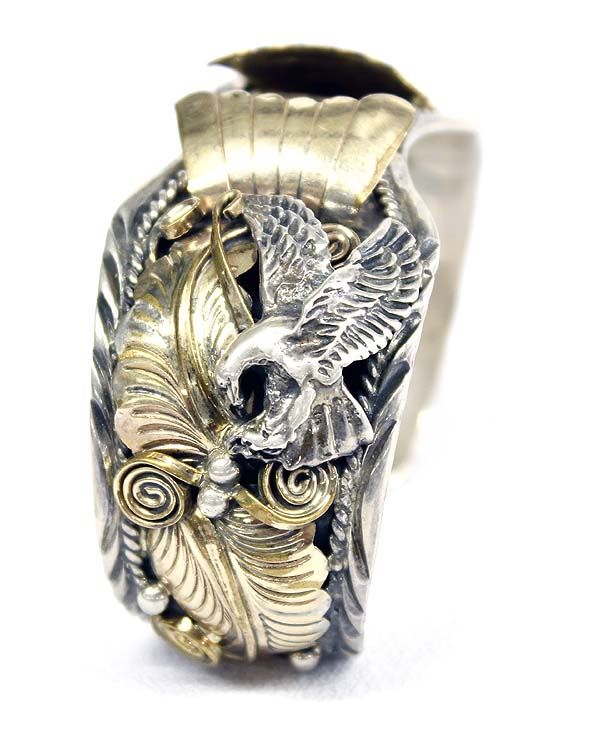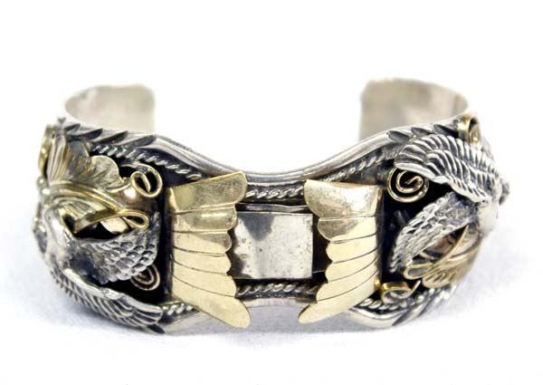 1970s Beautiful Native American Navajo Sterling Silver Eagle Watch Bracelet by Allen Chee, inside measures 6.5" which includes opening x 1.25"W, hallmarked and stamped sterling, 56.62g in total wt.