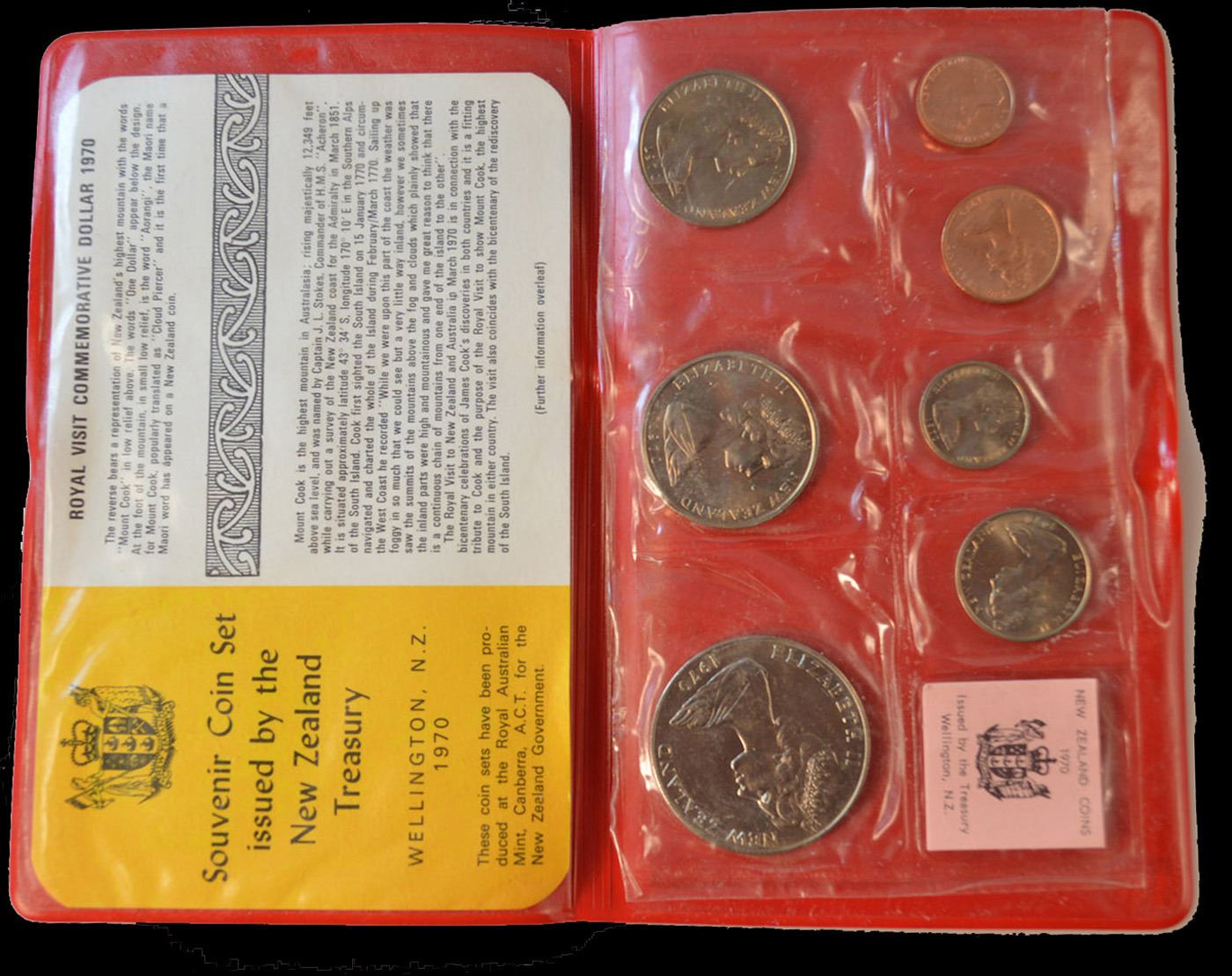 1970 New Zeland Treasury Uncirculated Coin Set 7 Coins.