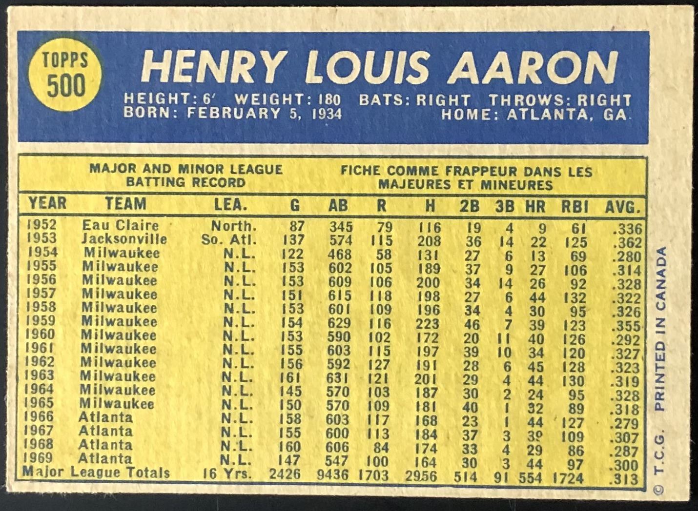 Card #500 OPC, vintage, MLB, baseball, hall of fame