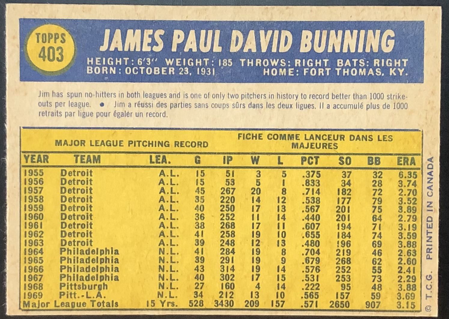 Card #403 MLB, baseball, vintage, OPC, hall of fame