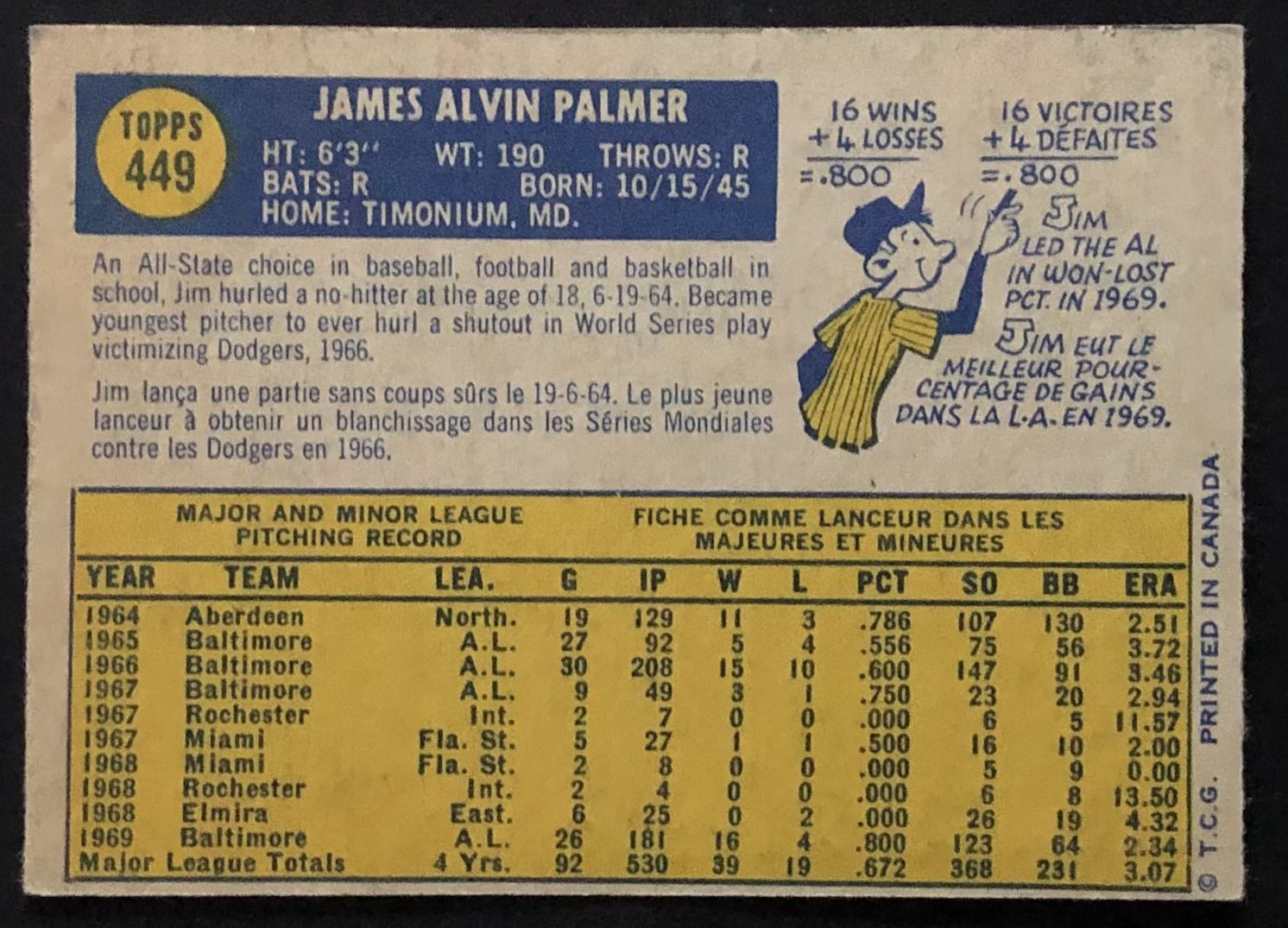 Card #449 mlb, hall of fame, baseball, OPC, vintage