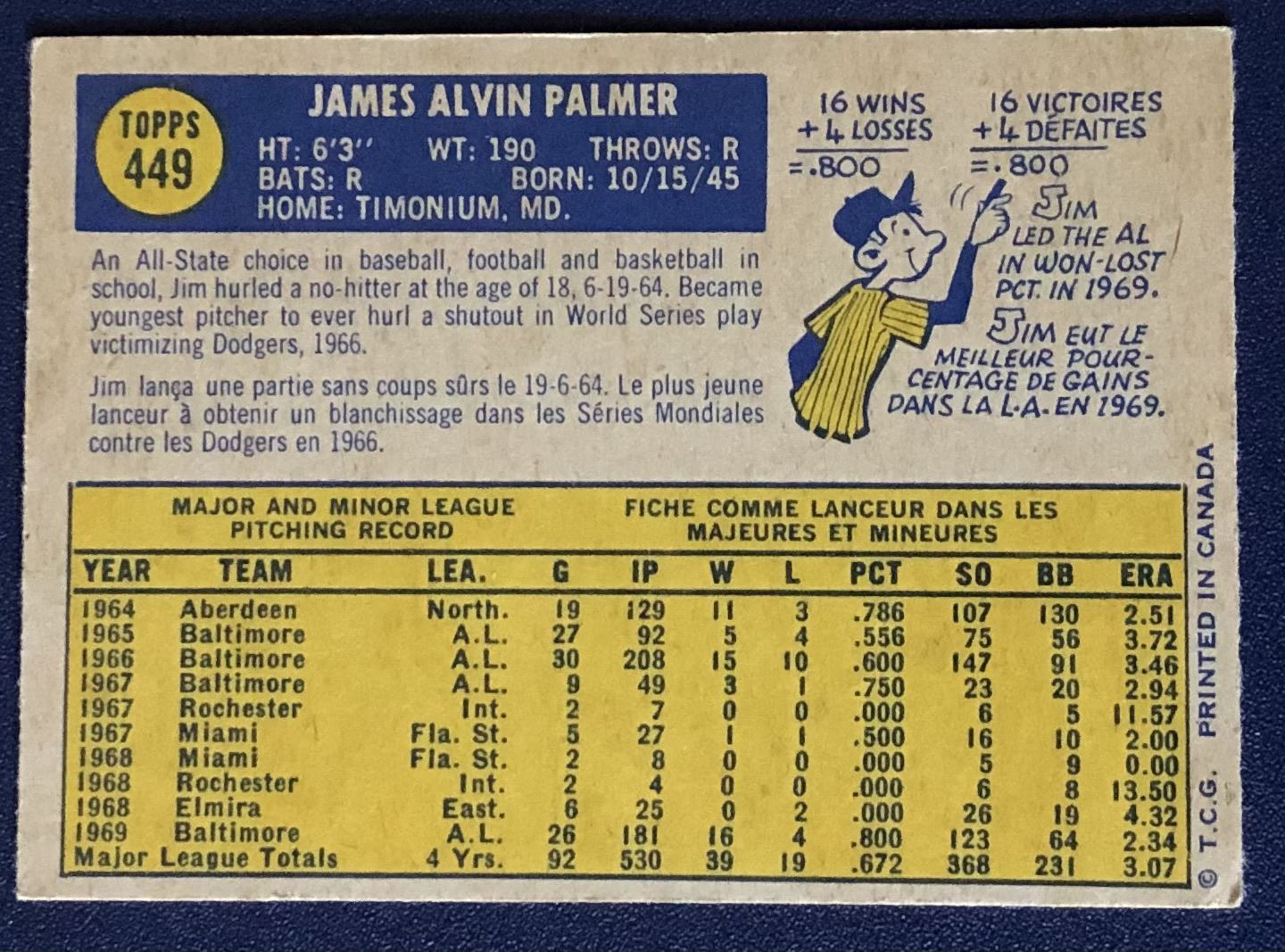 Card #449 vintage, MLB, baseball, OPC, hall of fame