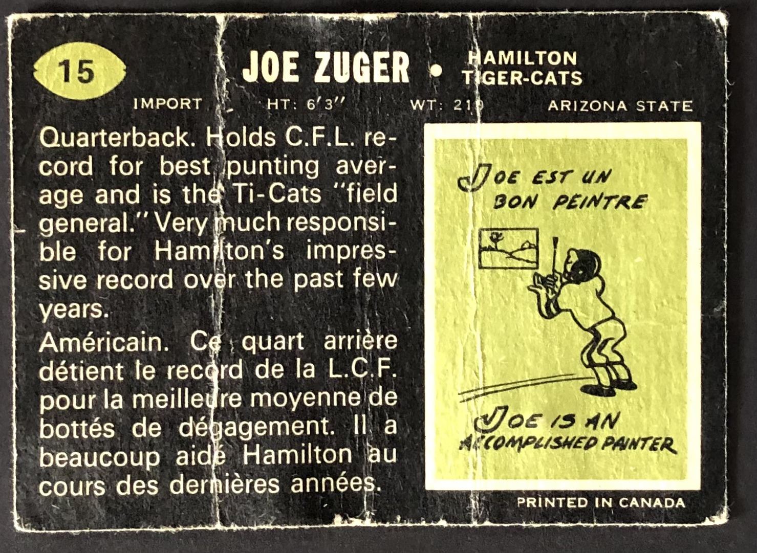 Card #15 creasing, filler quality PR CFL, football, vintage