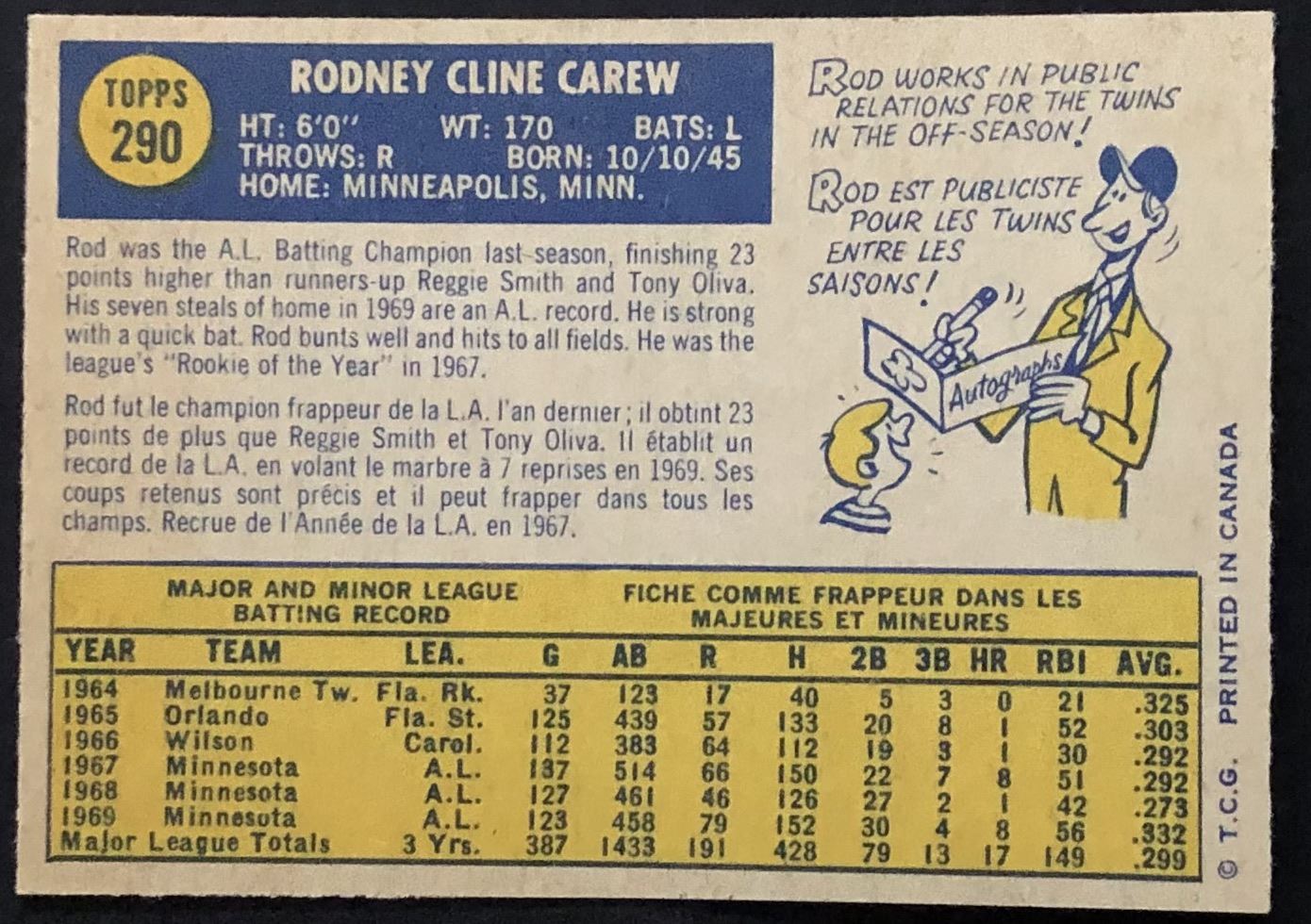 Card #290 mlb, hall of fame, baseball, OPC, vintage