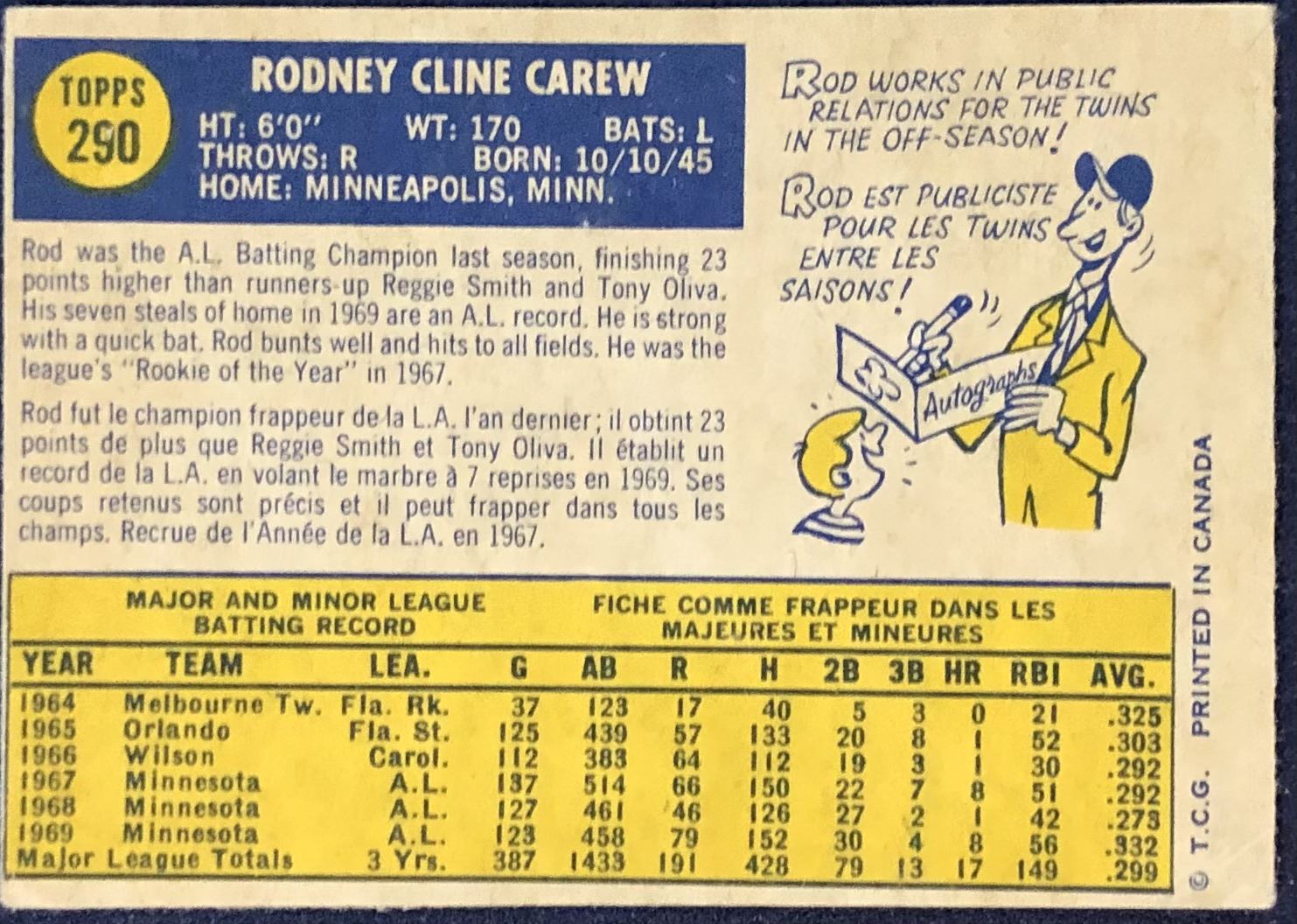 Card #250 OPC, MLB, baseball, vintage, hall of fame