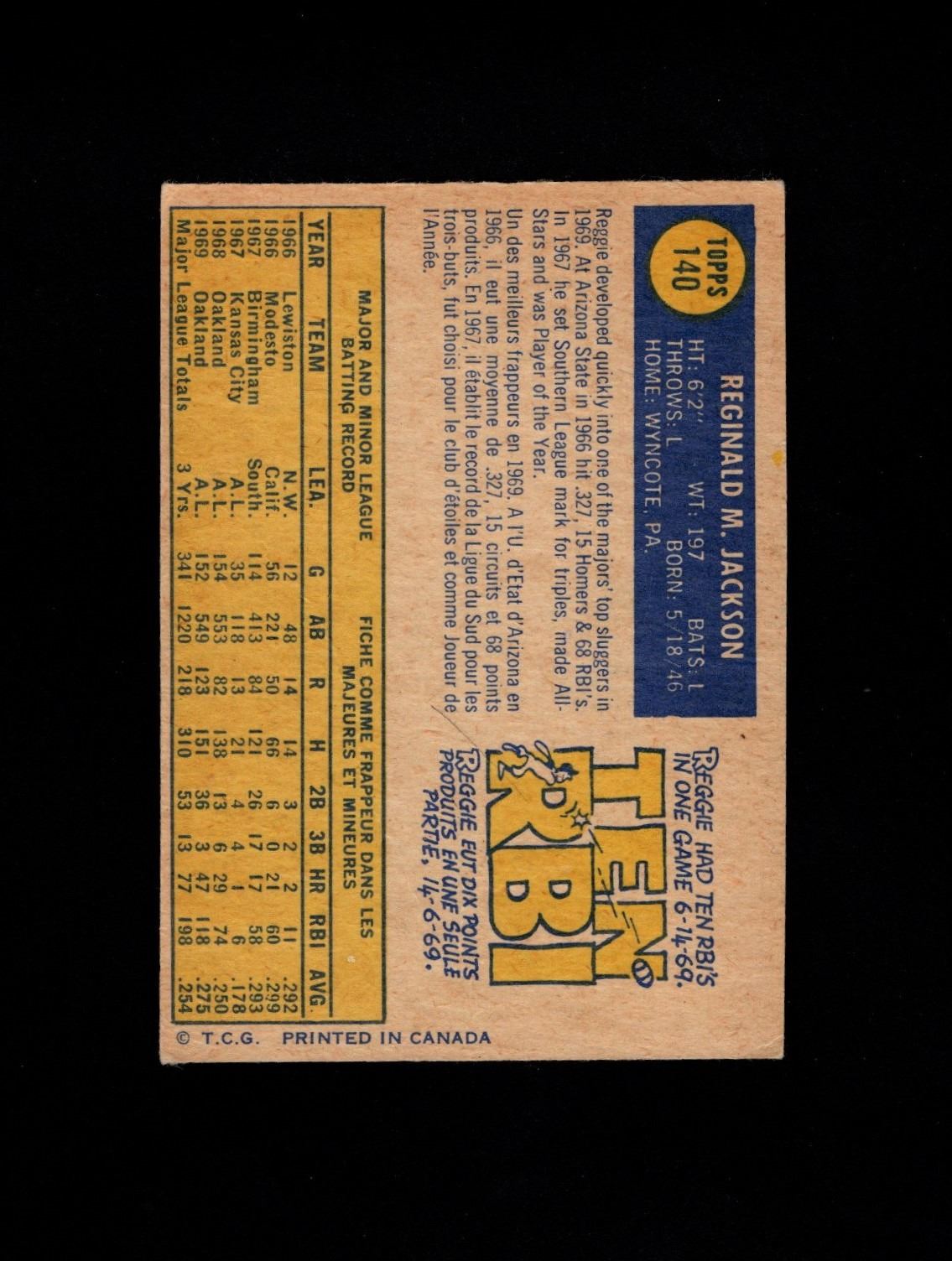 Lower print runs make the vintage O-Pee-Chee cards very desirable. This grades VG/EX. Great mid-grade early Reggie card.