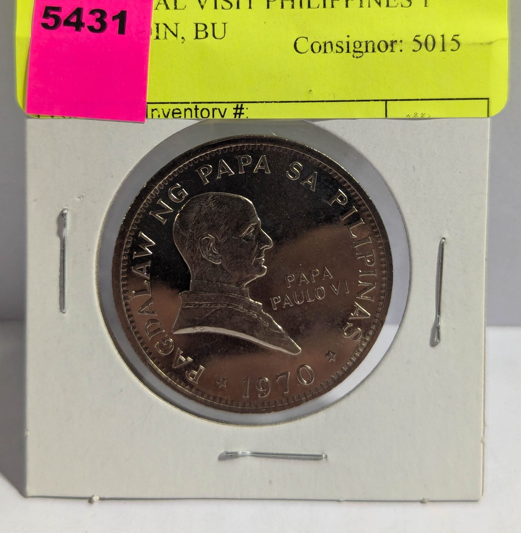 1970 PAPAL VISIT PHILIPPINES 1 PESO COIN, BU