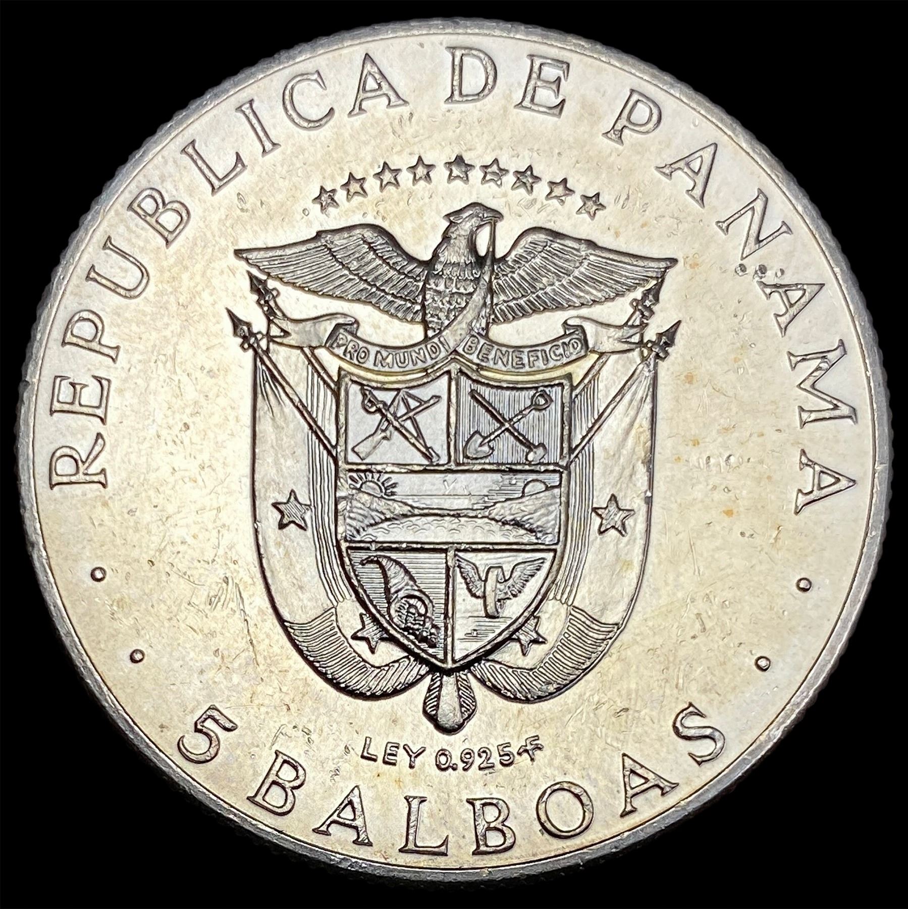 1970 Panama Silver 5 Balboas UNCIRCULATED