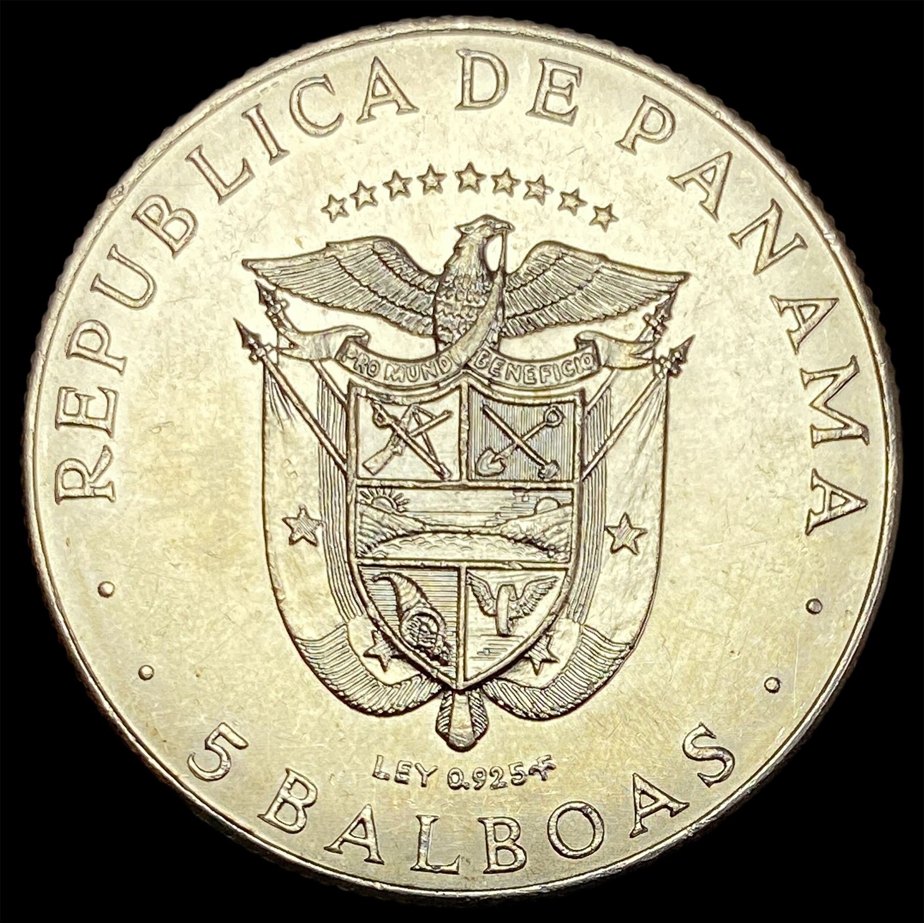 1970 Panama Silver 5 Balboas UNCIRCULATED