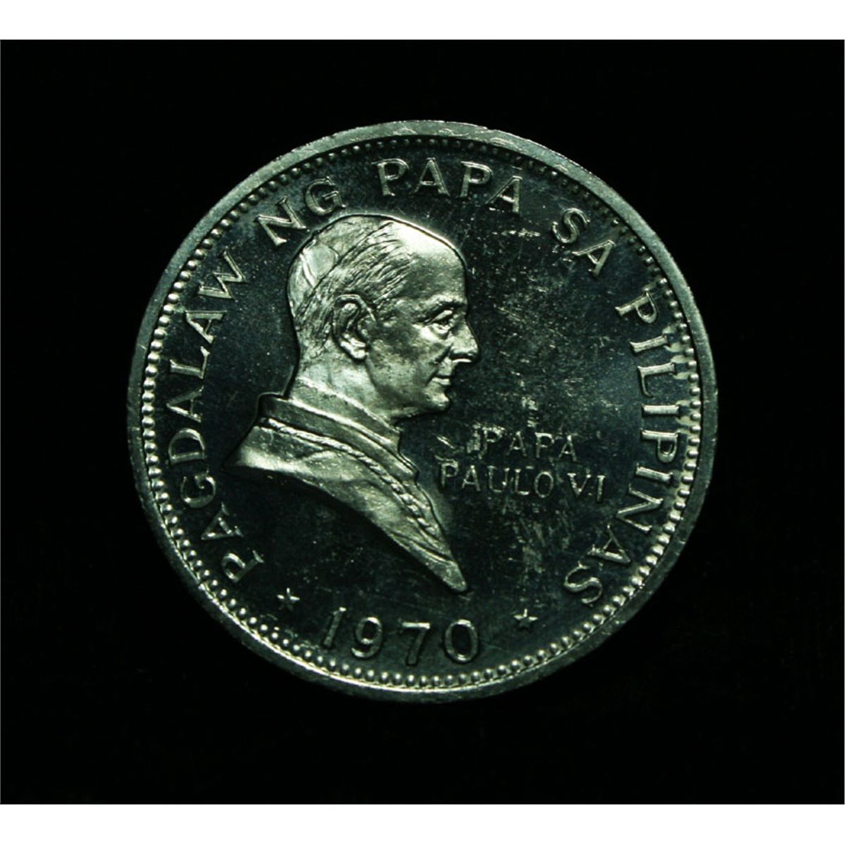 Great coin issued by Ferdinand Marcos to commemorate the Visit by the Pope to the Philippines. The coin has Ferdinand Marcos on one side and Pope Paul VI on the other. It had a limited mintage of 70,000 pieces in 1970. Estimated Value $50
