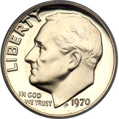 1970 Roosevelt Dime. No S. PCGS graded Proof 69 Cameo. A near perfect coin. Owning a rare Roosevelt dime like this will never bring after-sale remorse, for the fact is so few of these No S Proofs are offered that it may be awhile before another with such stunning perfection comes along. Bid aggressively! Pop 2; none finer at PCGS. (PCGS # 85248).
