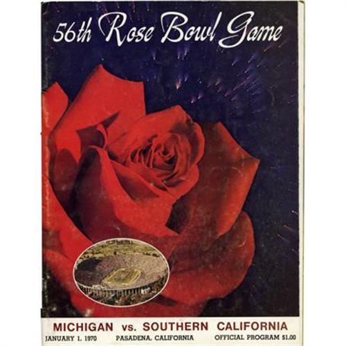 <B>1970 Rose Bowl Program, Signed.</B></I> Official program for the 56th annual playing of the Rose Bowl in Pasadena chronicles an occasion that saw the Trojans of USC defeat the Michigan Wolverines 10-3. Program remains on great condition. Signed inside by several members of the Trojans including head coach John McKay, Al Cowlings and Jimmy Jones. <I>LOA from PSA/DNA.</B></I><BR><BR><b>Shipping:</b> Books & Catalogs (<a target="_blank" href="http://www.heritageauctions.com/common/shipping.php">view shipping information</a>)