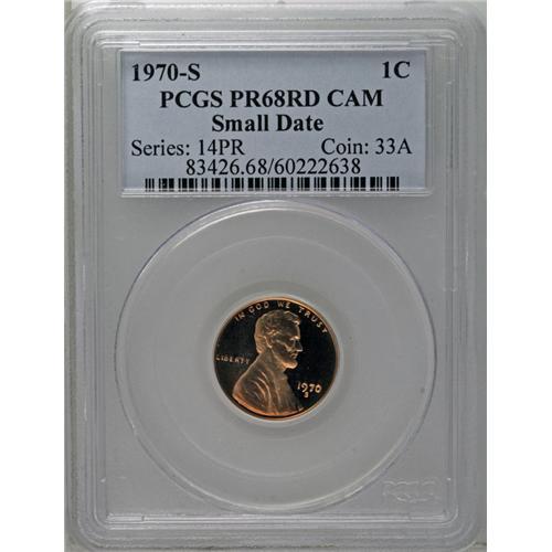 1970-S 1C Small Date PR68 Cameo PCGS. The vibrant surf