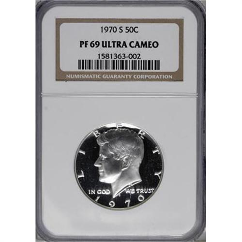 <B>1970-S 50C PR69 Deep Cameo NGC.</B></I> NGC Census: (161/0). PCGS Population (215/0). Numismedia Wsl. Price for NGC/PCGS coin in PR69: $220. (#96806)<BR><BR><b>Shipping:</b> Coins & Currency (<a target="_blank" href="http://www.heritageauctions.com/common/shipping.php">view shipping information</a>)