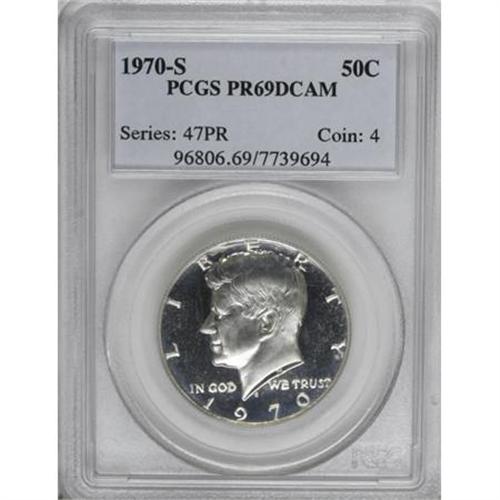 <B>1970-S 50C PR69 Deep Cameo PCGS.</B></I> PCGS Population (211/0). NGC Census: (156/0). Numismedia Wsl. Price for NGC/PCGS coin in PR69: $280. (#96806)<BR><BR><b>Shipping:</b> Coins & Currency (<a target="_blank" href="http://www.heritageauctions.com/common/shipping.php">view shipping information</a>)