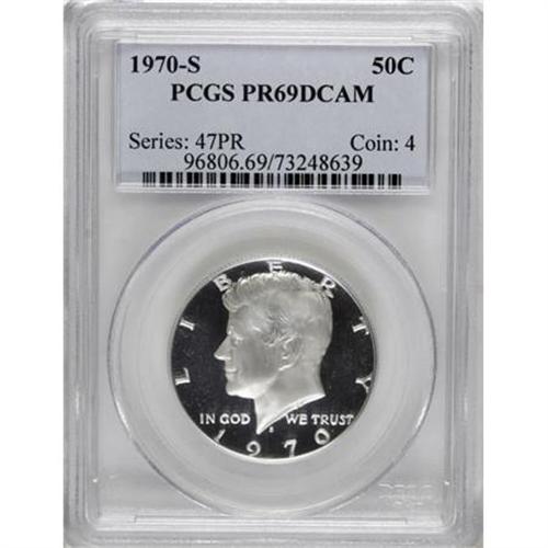 <B>1970-S 50C PR69 Deep Cameo PCGS.</B></I> . PCGS Population (215/0). NGC Census: (162/0). Numismedia Wsl. Price for NGC/PCGS coin in PR69: $230. (#96806)<BR><BR><b>Shipping:</b> Coins & Currency (<a target="_blank" href="http://www.heritageauctions.com/common/shipping.php">view shipping information</a>)