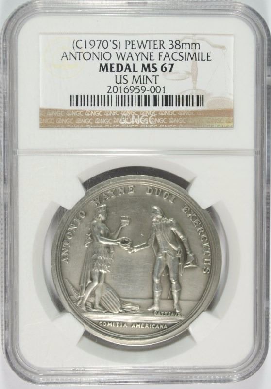 1970'S ANTONIO WAYNE FACSIMILE PEWTER MEDAL , NGC  MS-67