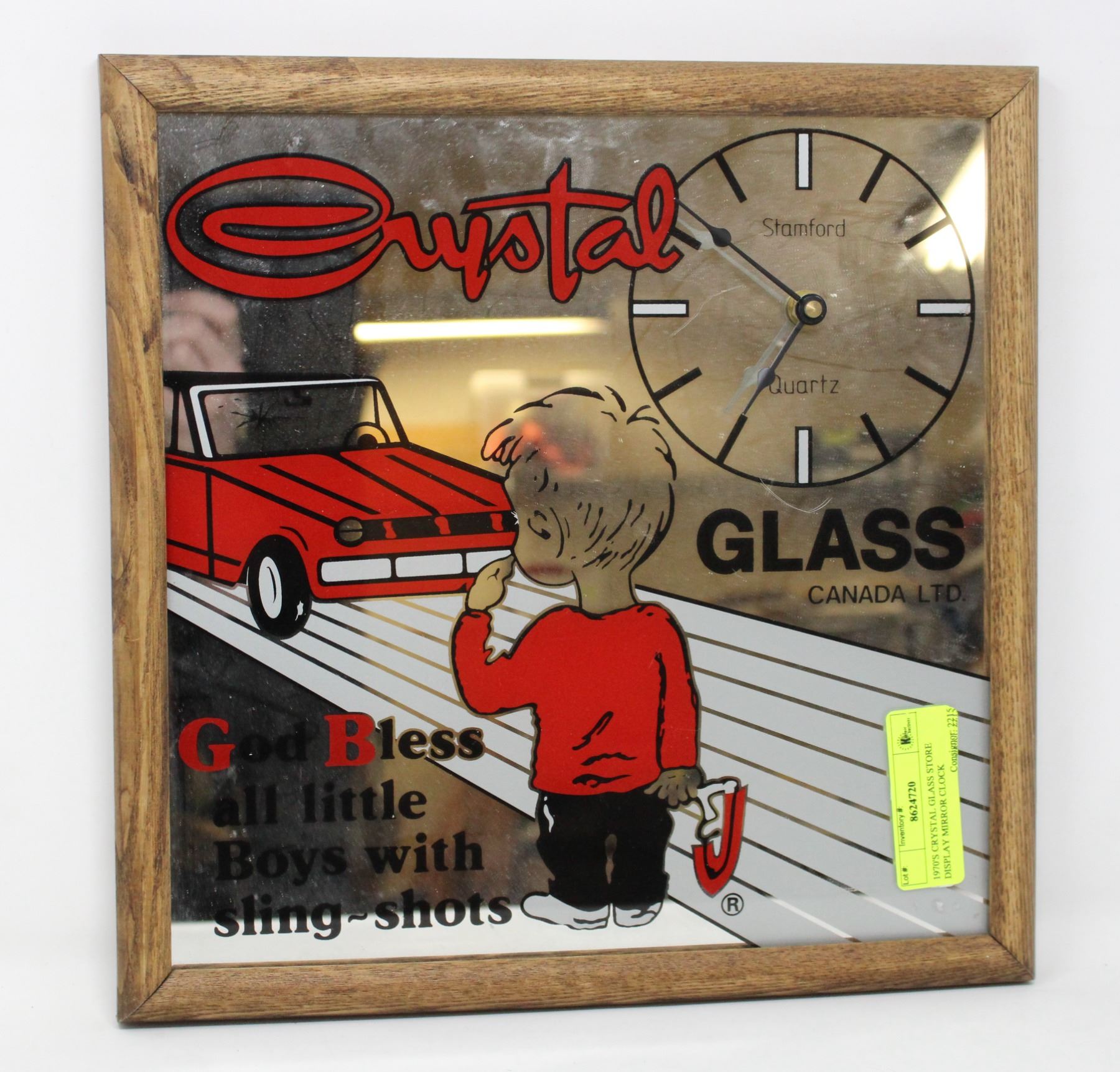 1970'S CRYSTAL GLASS STORE DISPLAY MIRROR CLOCK