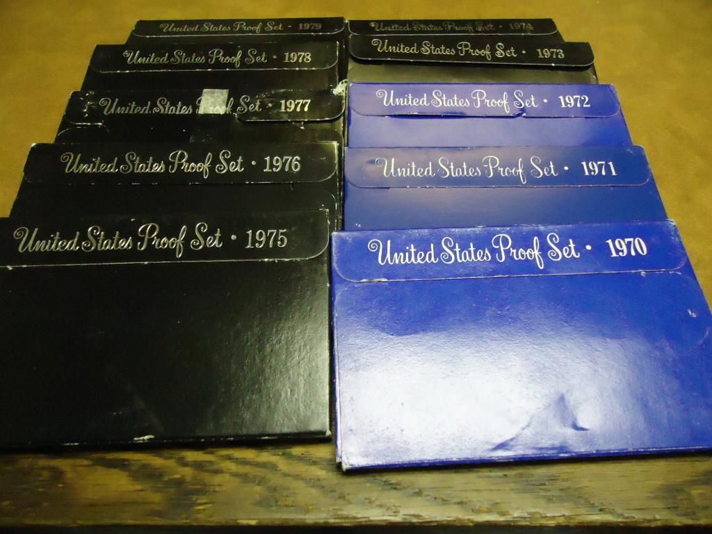 1970'S DECADE RUN OF US PF SETS 10 SETS W/BOXES
