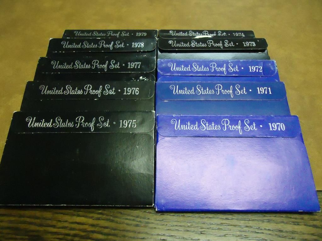 10 SETS WITH BOXES, 1970 US PROOF SET WITH BOX, 40% SILVER HALF