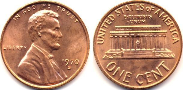 1970-S LINCOLN SMALL CENT-CH BU+RED