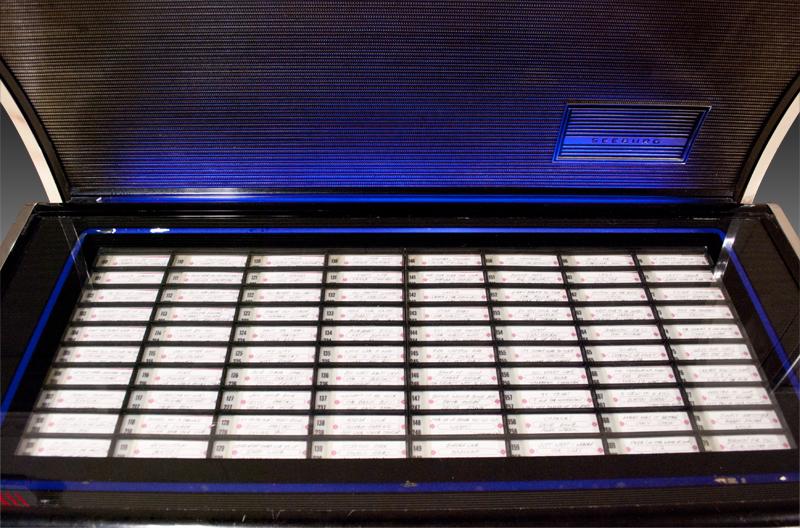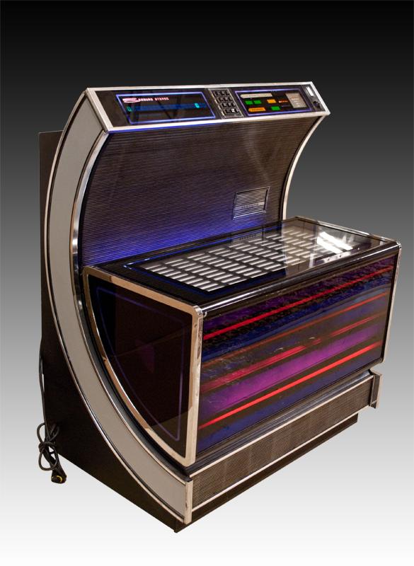 Plays 160 music selections. Introduced fall of 1970. New cabinet design by Bob O'Neil, his first effort for Seeburg. This machine set a new standard for jukebox cabinets shapes, featuring the extensive use of metal castings for cabinet parts, in a manner similar to what was done in the jukebox 'gold' and 'silver' ages. Seeburg patented the design of the USC1. With 80 records and additional blank title cards. Examined ans serviced by a professional 11/10/10. Serial No. 1273996. 49" H x 40" W x 28" D.
