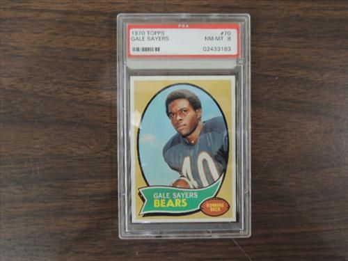 1970 TOPPS #70 GRADED FOOTBALL CARD GALE SAYERS. GRADED PSA NM-MT 8. AS SHOWN. VIEW PICTURE FOR DETAIL.