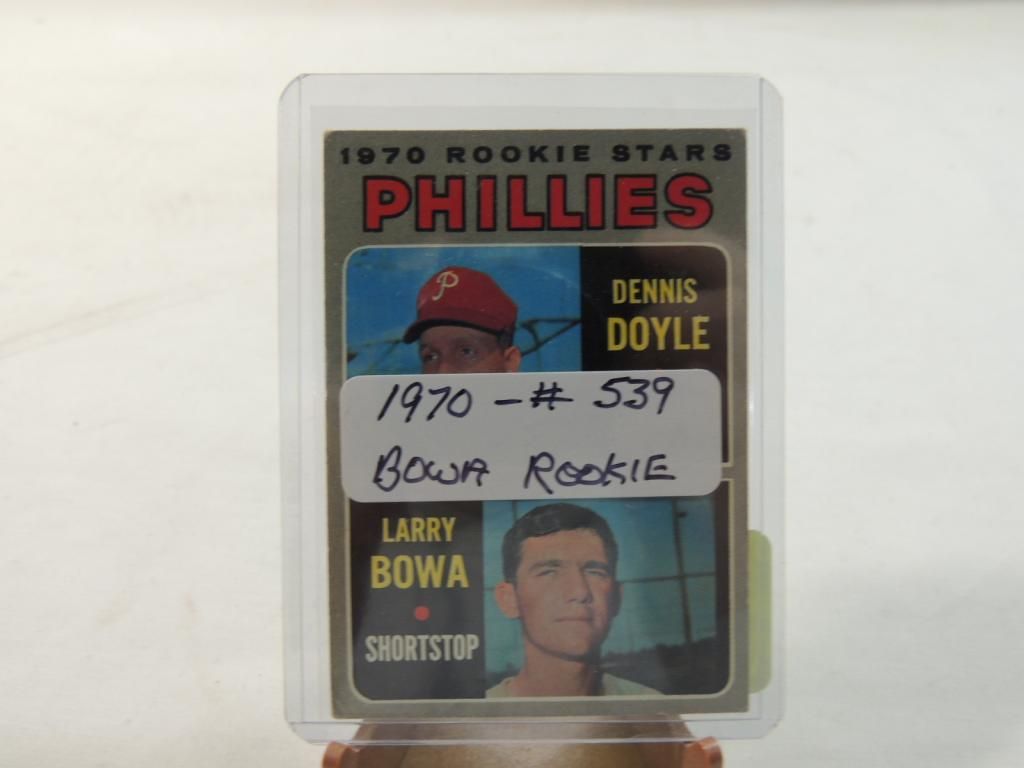 1970 ROOKIE STARS PHILLIES DENNIS DOYLE AND LARRY BOWA ROOKIE CARD BASEBALL PLAYER CARDS. TRADING CARDS. COLLECTIBLE. BASEBALL MEMORABILIA. GOOD CONDITION AS SHOWN. SEE PHOTO FOR MORE DETAILS.