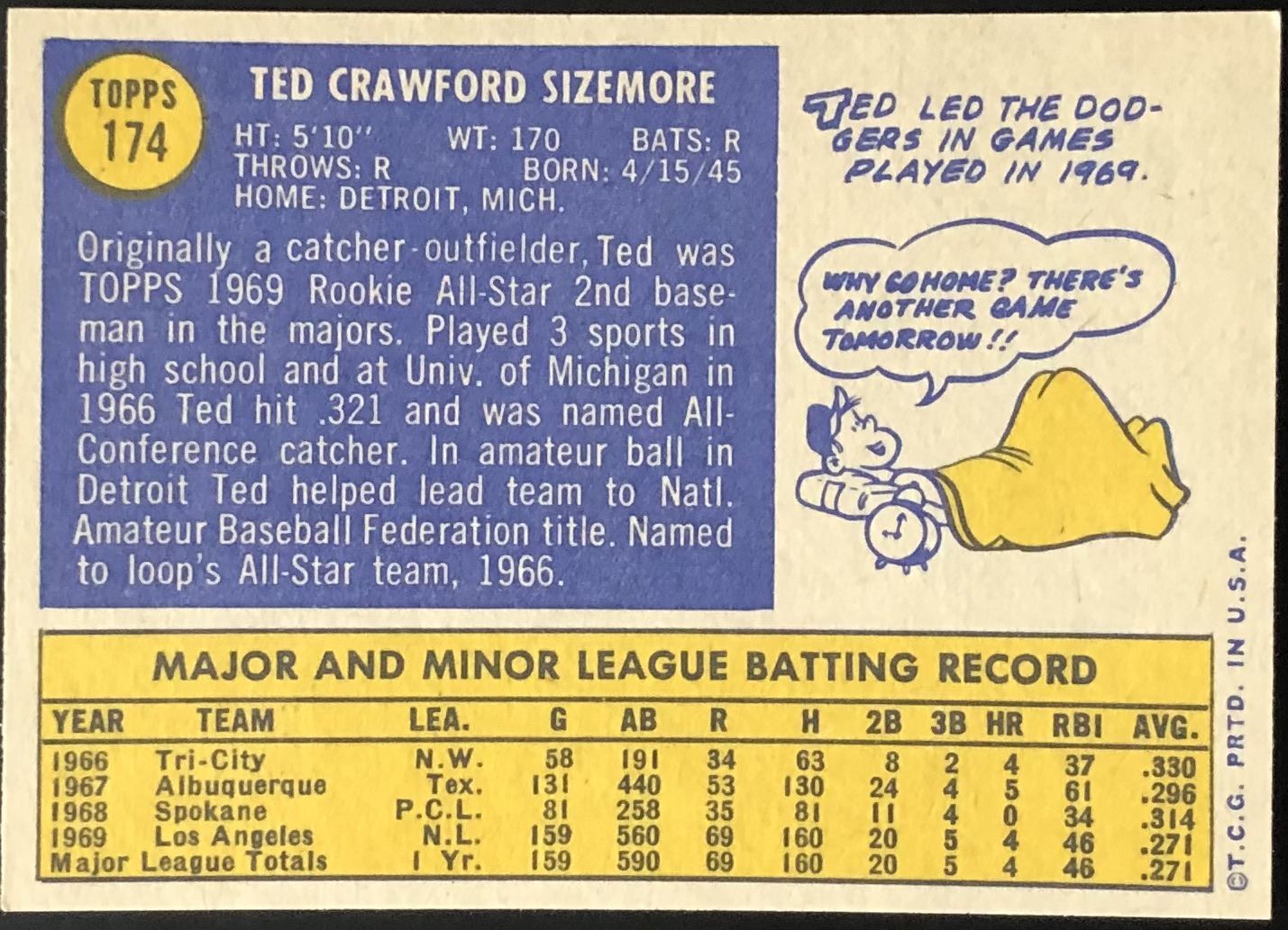 1970 TOPPS TED SIZEMORE ROOKIE CARD
