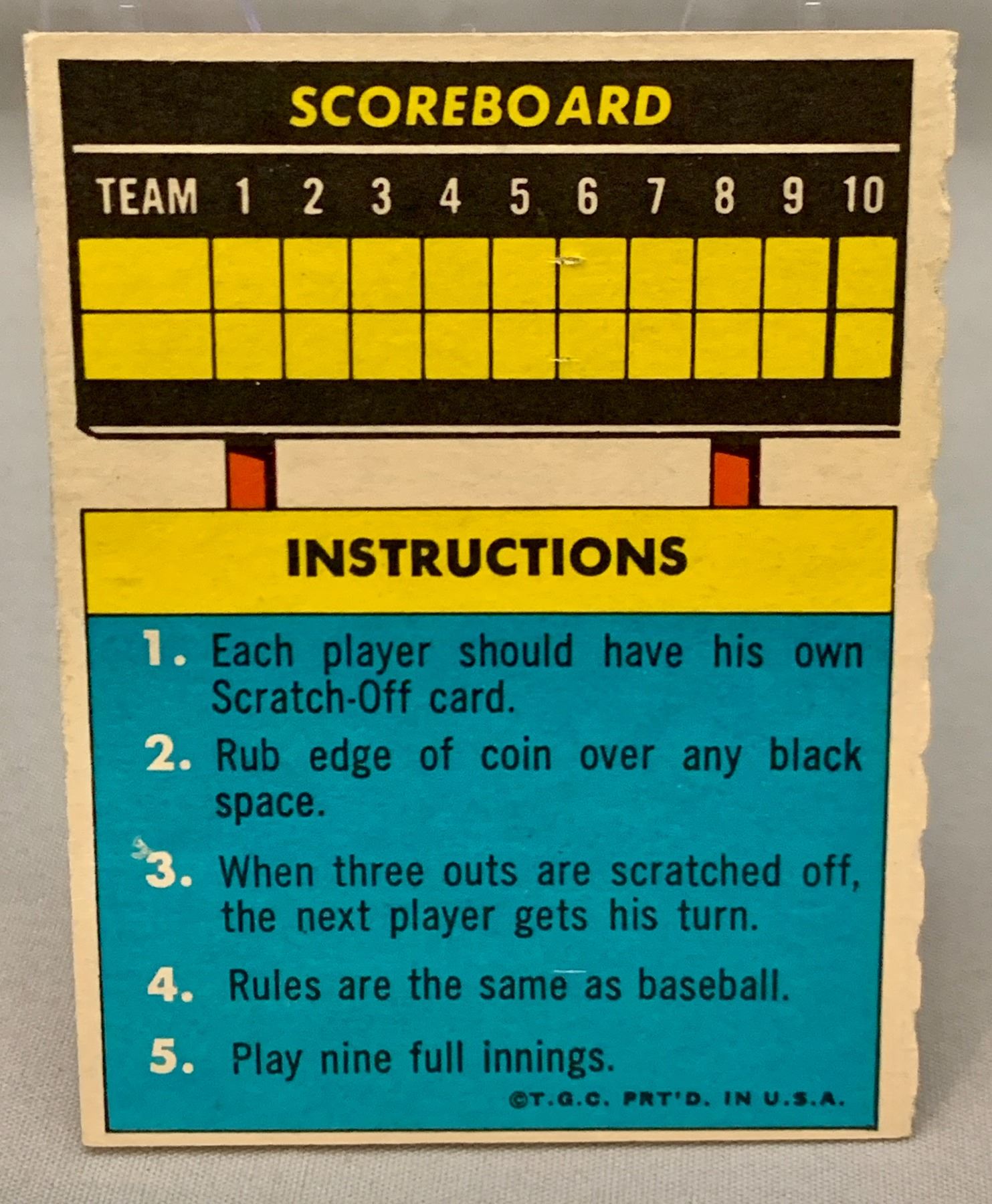 1970 Topps Boog Powell "Play Baseball" Scratch-Off Card Unmarked