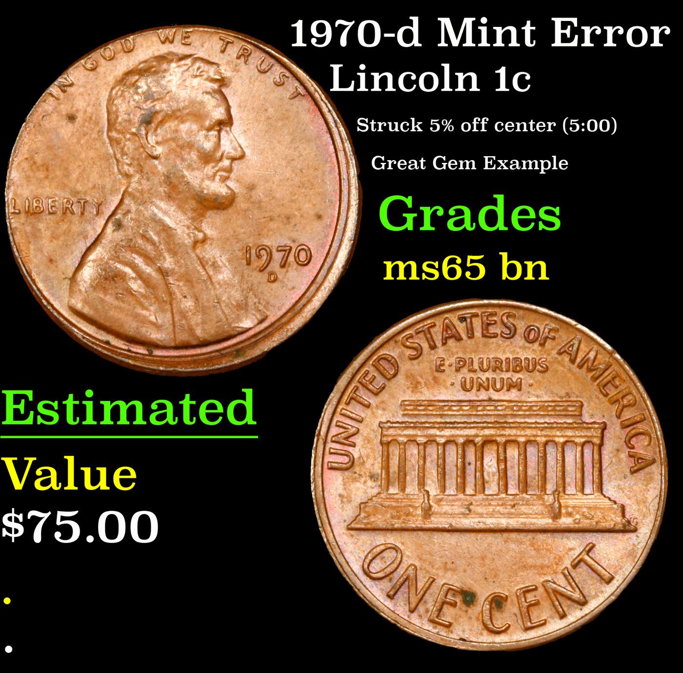 1970-d Mint Error Lincoln Cent 1c Grades GEM Unc BN.