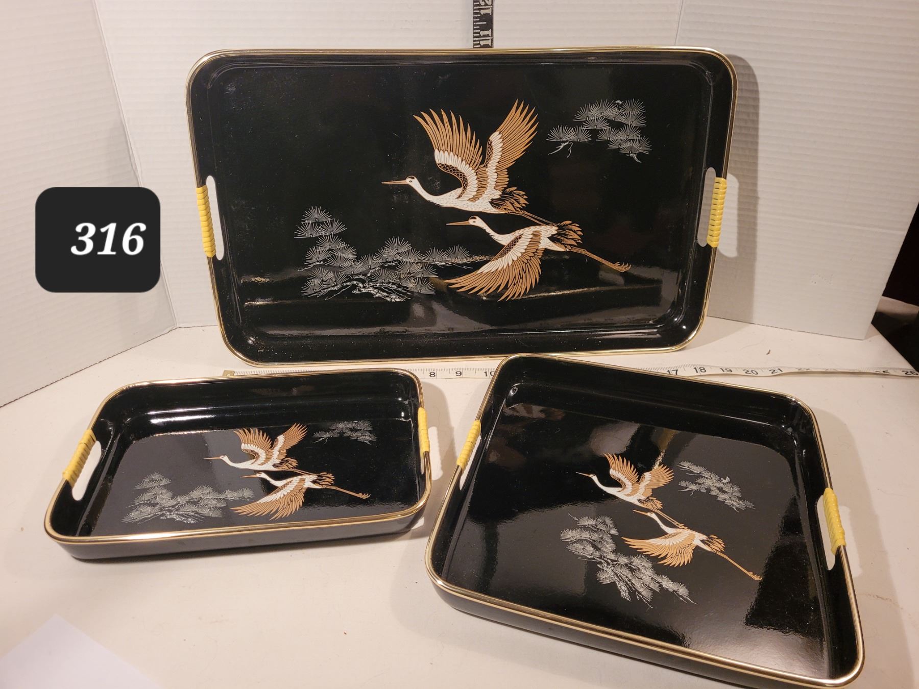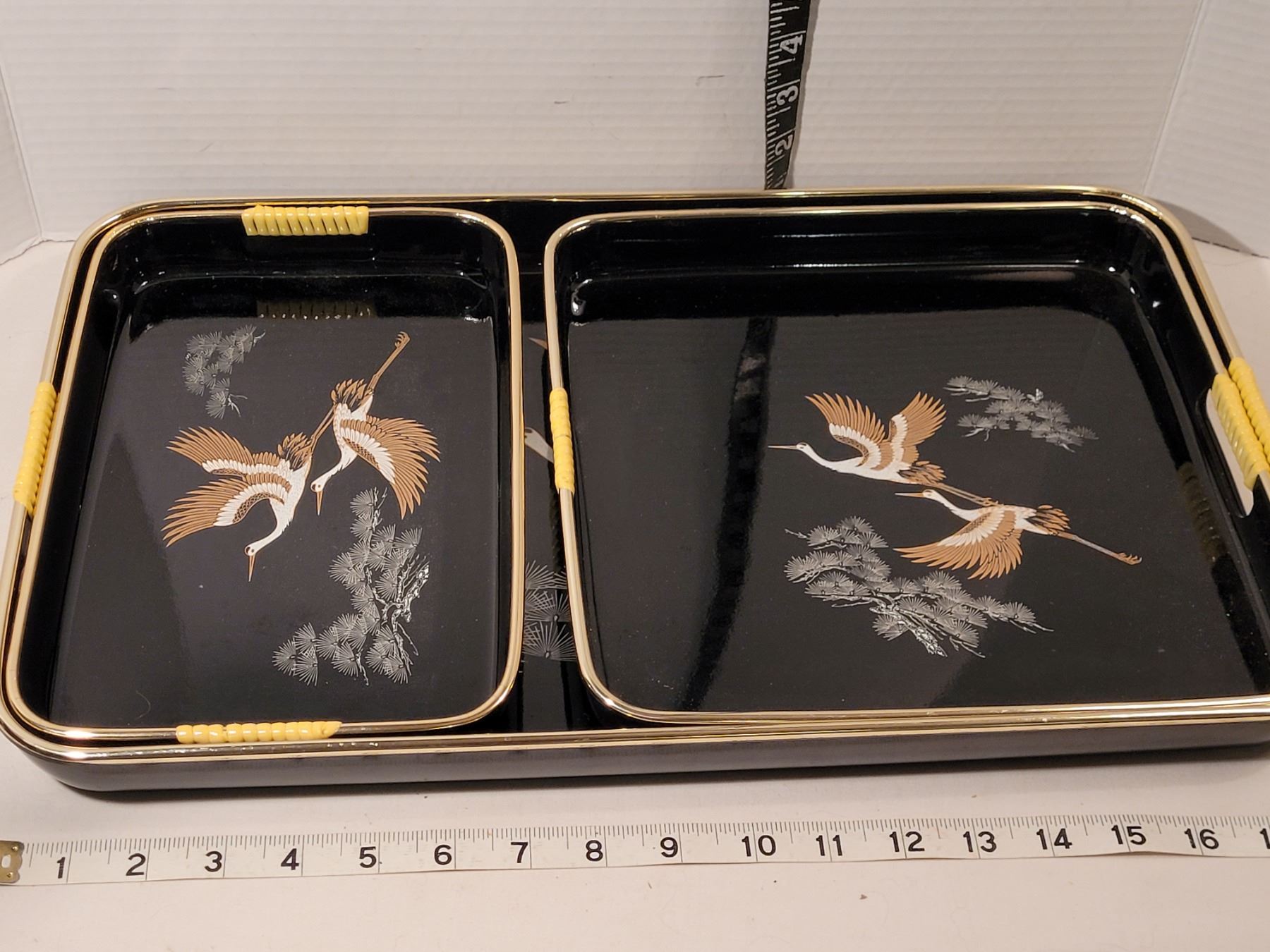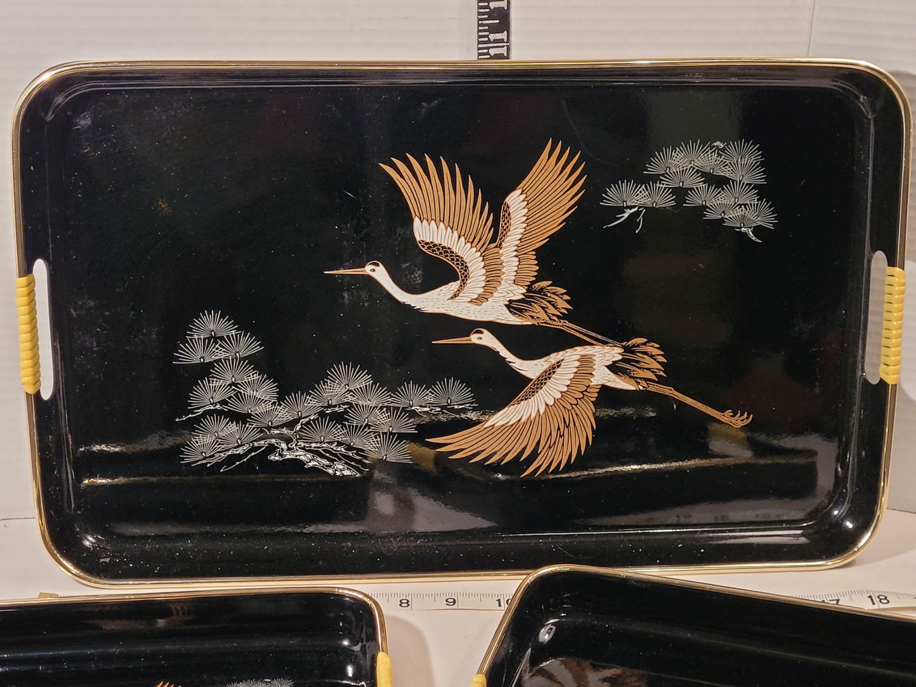 1970's Crane Serving tray set.