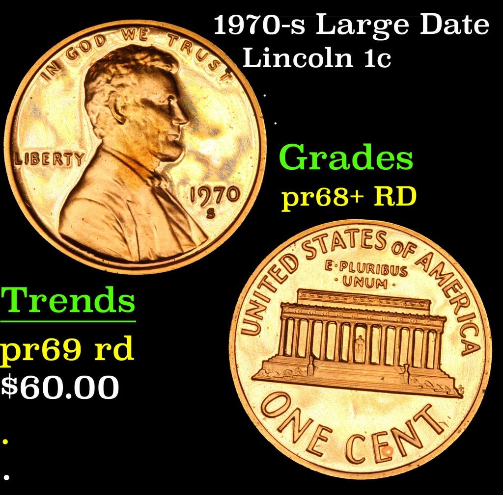1970-s Large Date . . Lincoln Cent 1c Grades Gem++ Proof Red.