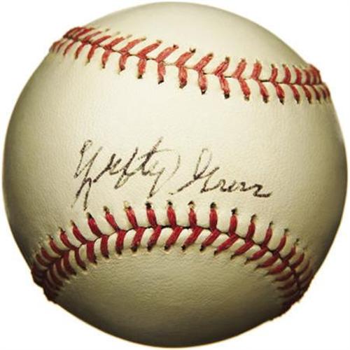 <B>1970's Lefty Grove Signed Baseball.</B></I> One of the game's greatest southpaws, Grove retired with a record of 300 wins against just 141 defeats, earning a trip to Cooperstown on his third ballot in 1947. Despite living almost thirty years beyond his induction, Grove makes for a tough single, and this ONL (Feeney) ball would be worth a mint if not for the chemically removed autographs that make this offering an affordable alternative. Grove's black ink sweet spot signature rates a strong 9/10, and we defy you to find a hint of his former neighbors with the naked eye. Better collecting through science. <I>LOA from PSA/DNA. LOA from James Spence Authentication.</B></I><BR><BR><b>Shipping:</b> Balls, Pucks, etc., Small (<a target="_blank" href="http://www.heritageauctions.com/common/shipping.php">view shipping information</a>)