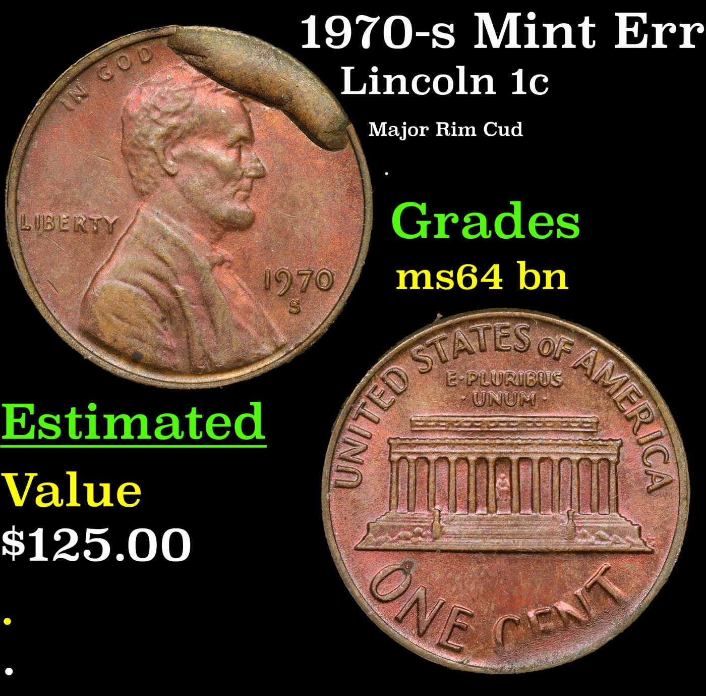 1970-s Mint Error Lincoln Cent 1c Grades Choice Unc BN.