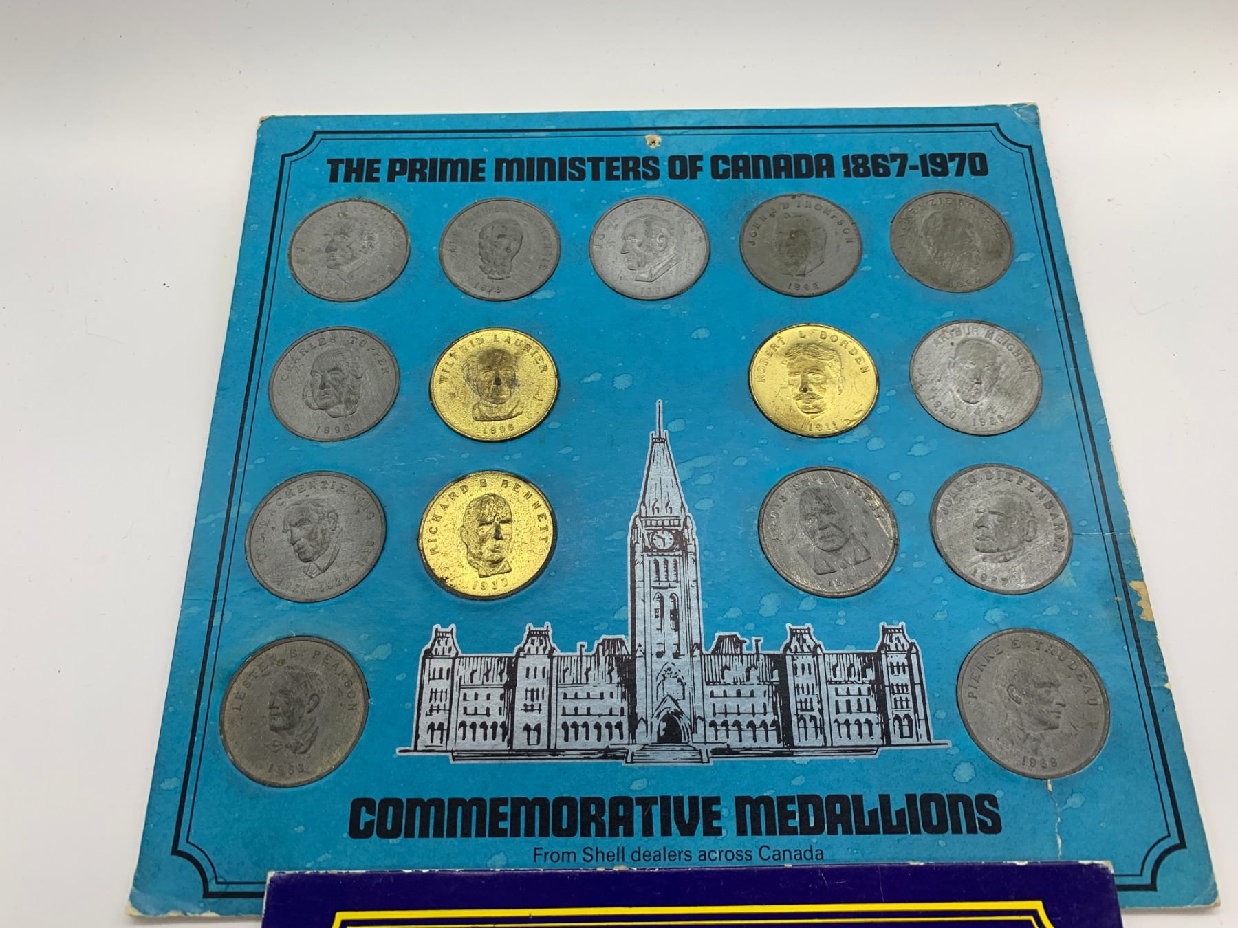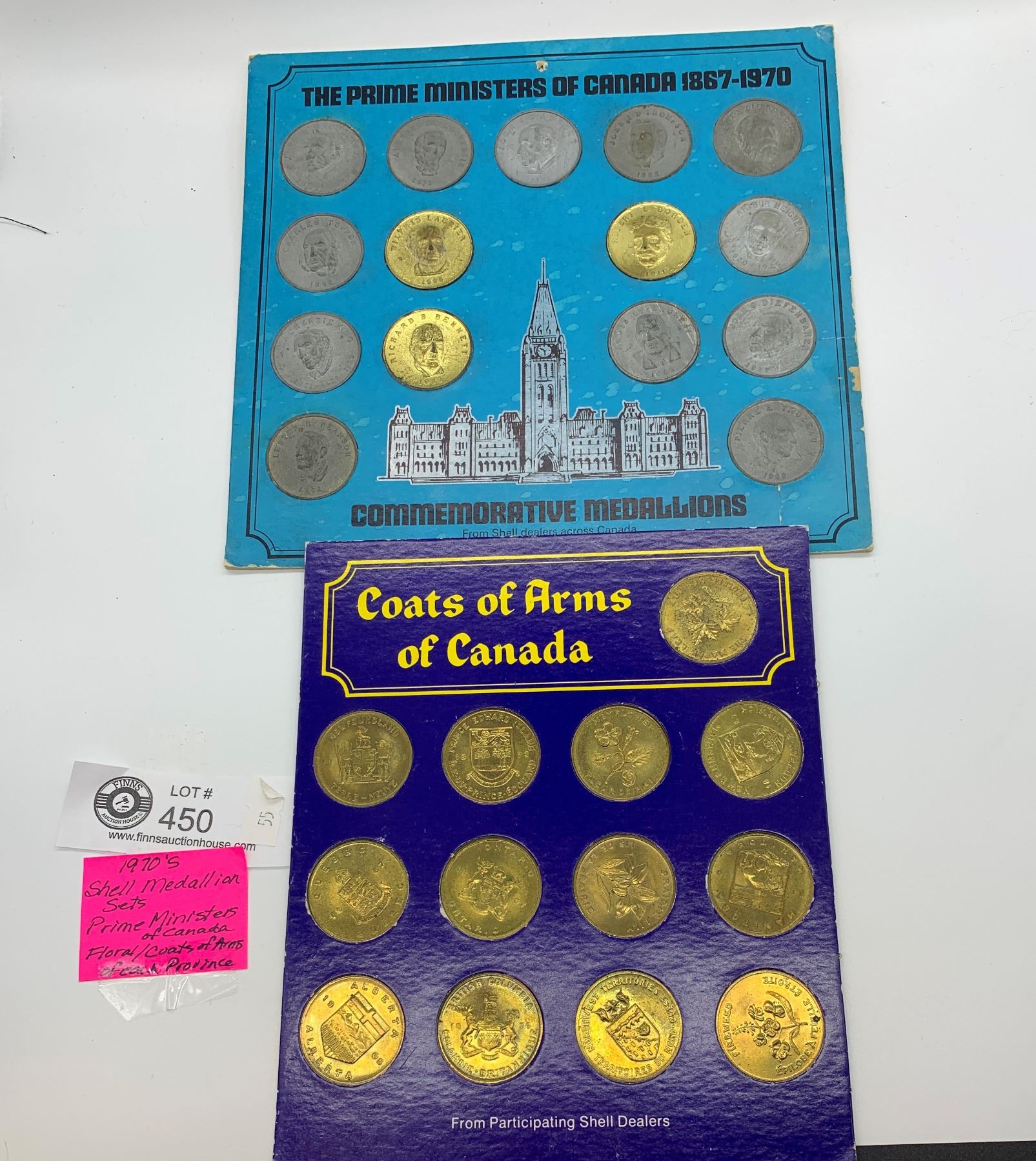 1970's Shell Medallion Sets. Prime Ministers of Canada and Floral Coats of Arms of each Province From Shell Gas with Fill Up.