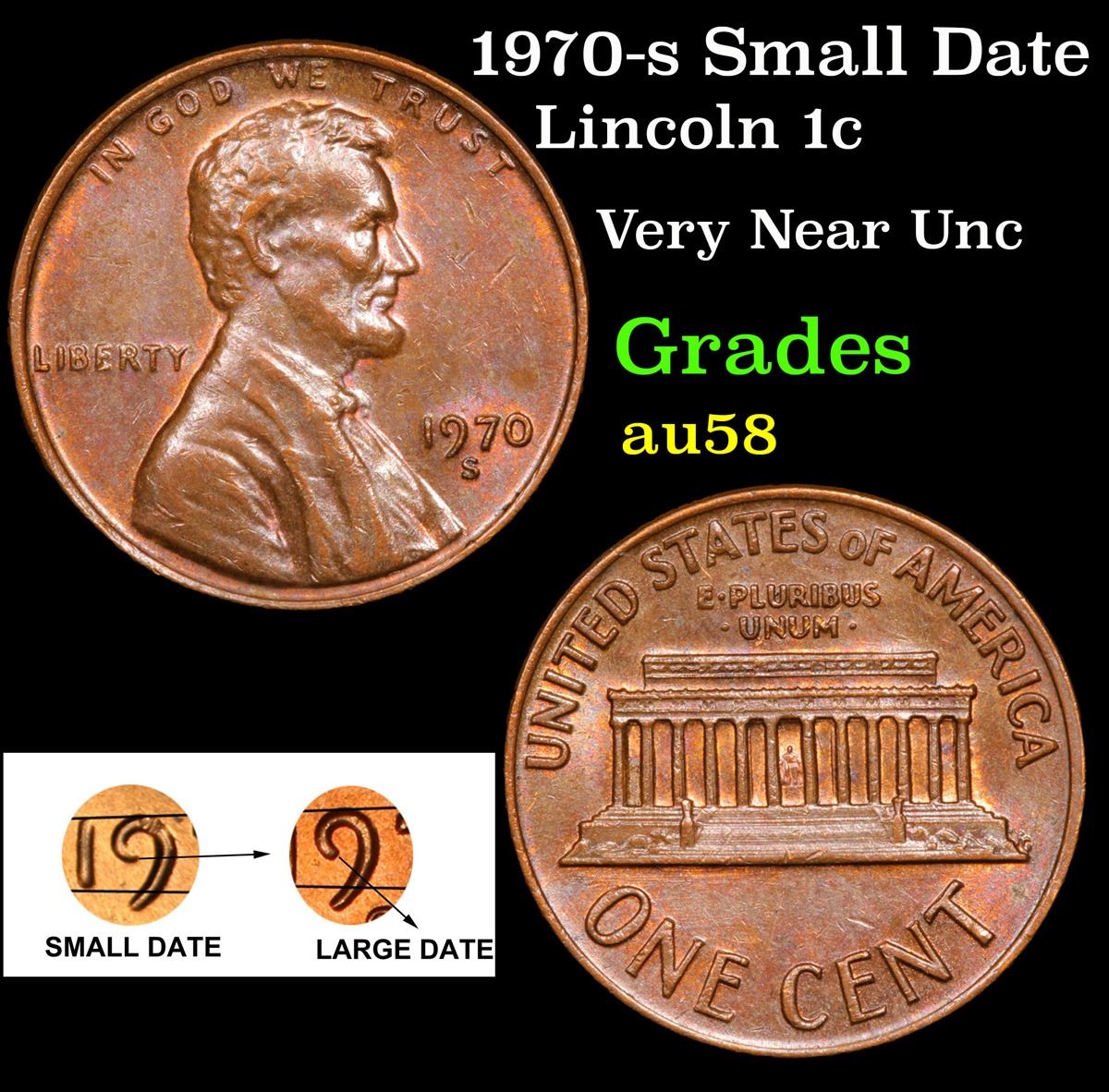 1970-s Small Date . Very Near Unc Lincoln Cent 1c Grades Choice AU/BU Slider.