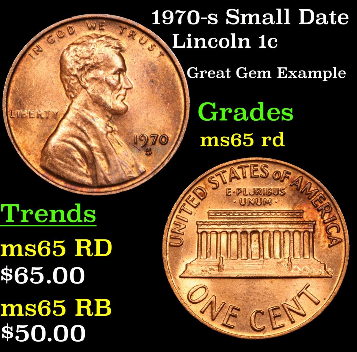 1970-s Small Date Lincoln Cent 1c Grades GEM Unc RD.
