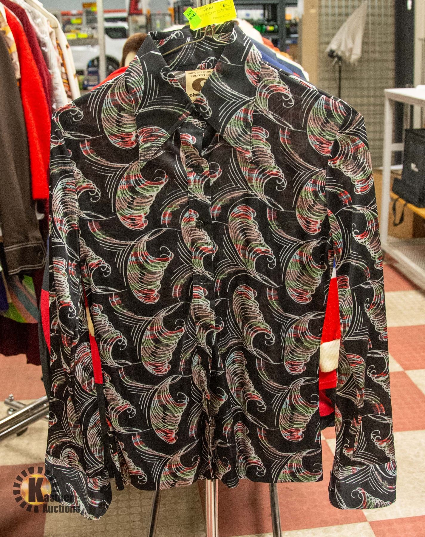 1970S BLACK PAISLEY LADIES SHIRT SIZE SM/M