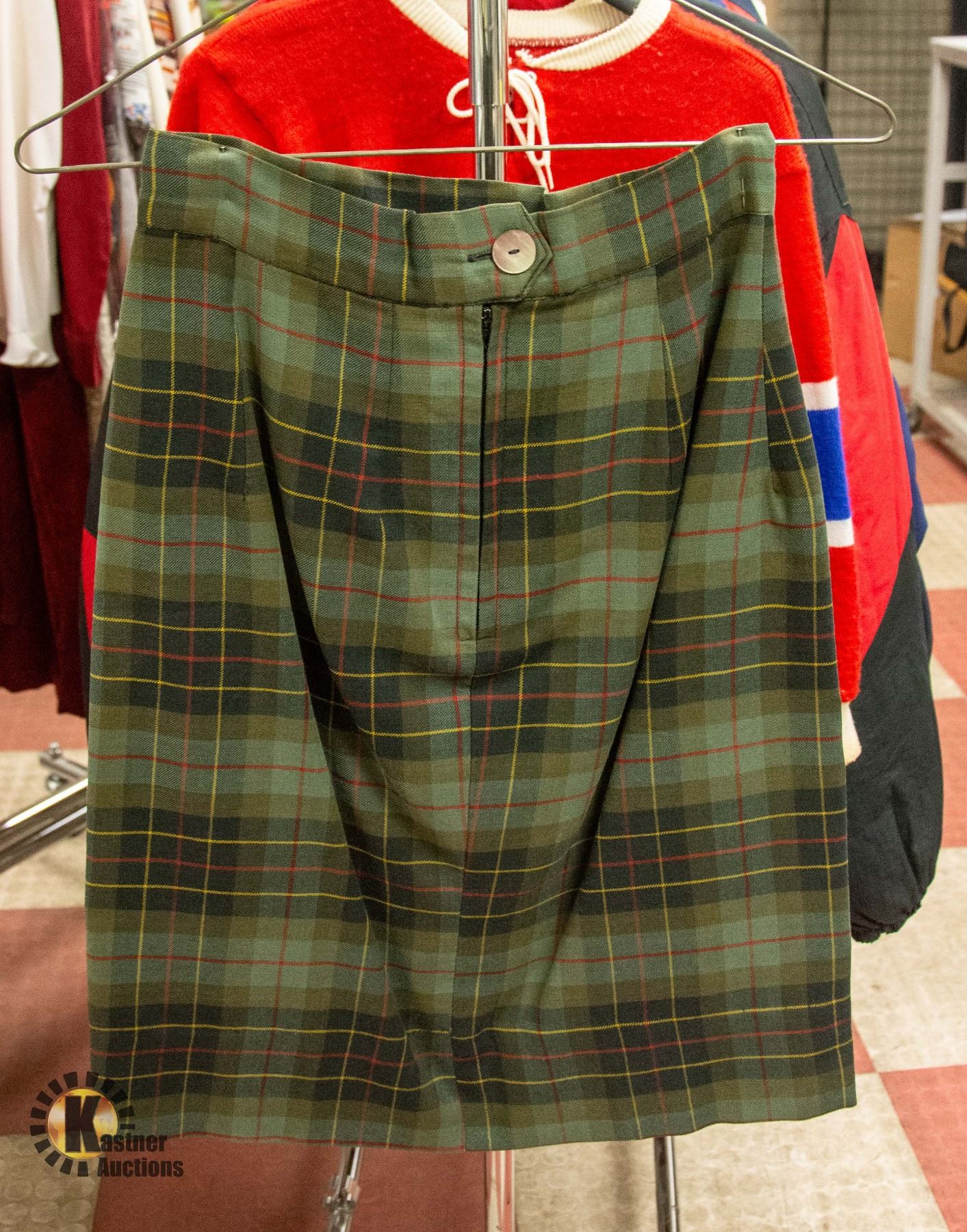 1970S GREEN PLAID PENCIL SKIRT SZ SM
