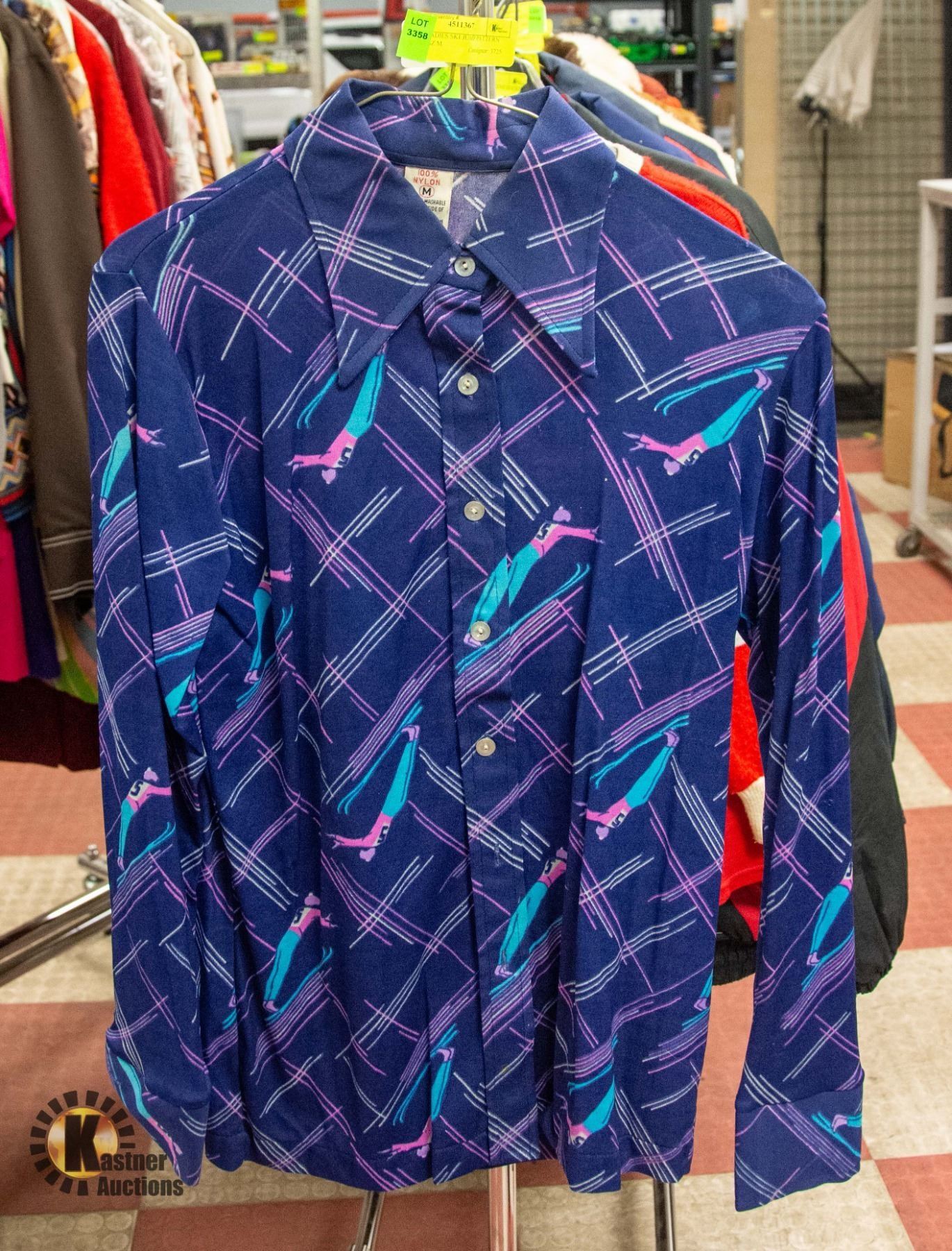 1970S LADIES SKI JUMP PATTERN SHIRT SZ M