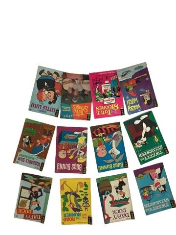 A collection of 12 Gold Key comics. Featuring Bugs Bunny #133, Jan. 1971 (cover torn at the top of the left side spine), Yosemite Sam #1, December 1970, Tweety and Sylvester #14, May, 1970 and #21, Dec. 1971, Bugs Bunny #128, March,1970, Daffy Dick #66, Nov. 1970 and #67, Jan. 1971, The Road Runner #27, Dec. 1971, Wacky Witch, #5, Jan 1972, The Three Stooges #5, March 1972, Marge's Little Lulu #198, December 1970,and The Little Stooges #6, December 1973.