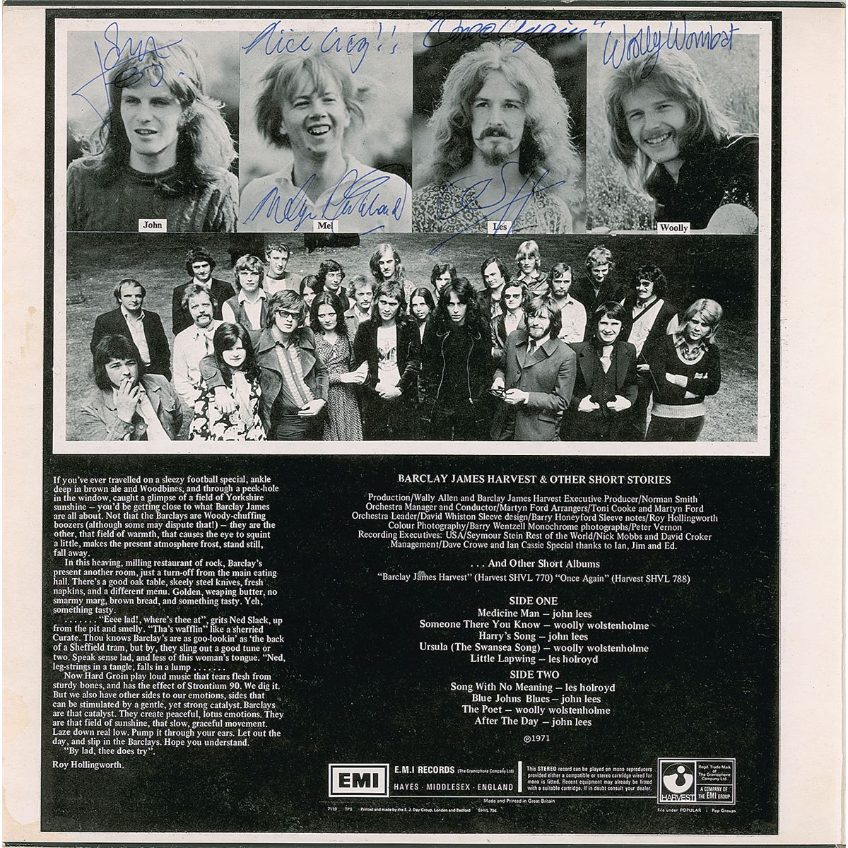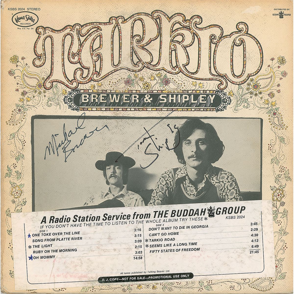 Three albums, each signed and inscribed on the front or gatefold in ink by the band members, including: Brewer & Shipley (Mike Brewer and Tom Shipley); The Jaggerz (Jimmie Ross, Jim Pugliano, Benny Faiella, Dominic Ierace, Thom Davies, and Bill Maybray); and Barclay James Harvest (John Lees, Stuart ‘Woolly’ Wolstenholme, Les Holroyd, and Mel Pritchard). In overall very good to fine condition, with various edge dings and wear, notations, and labels. Includes all three records.