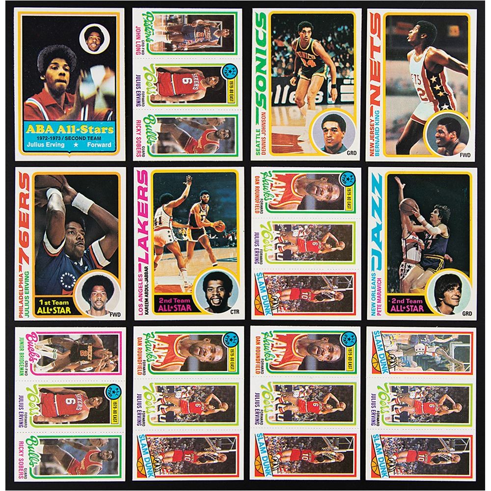 1980 Topps (6): Junior Bridgeman/Julius Erving/Ricky Sobers (NM+), John Long/Julius Erving/Ricky Sobers (NM+), Dan Roundfield/Julius Erving/Ron Brewer (3: NM+), and Elvin Hayes/Julius Erving/Ron Brewer (NM+).