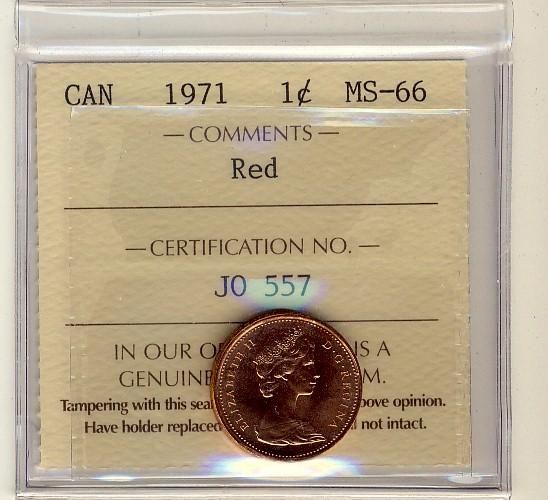 1971 1¢ ICCS MS66 Full Red, A superb GEM example.