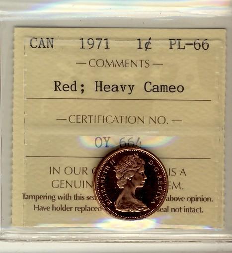 1971 1¢ ICCS PL66RD Heavy Cameo.