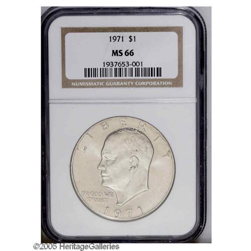 1971 $1 MS66 NGC. A hint of golden patina is noted on 1971[$1] MS66 NGC.